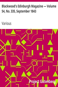 Blackwoods Edinburgh Magazine, No. 335, September 1843, Vol. 54 -